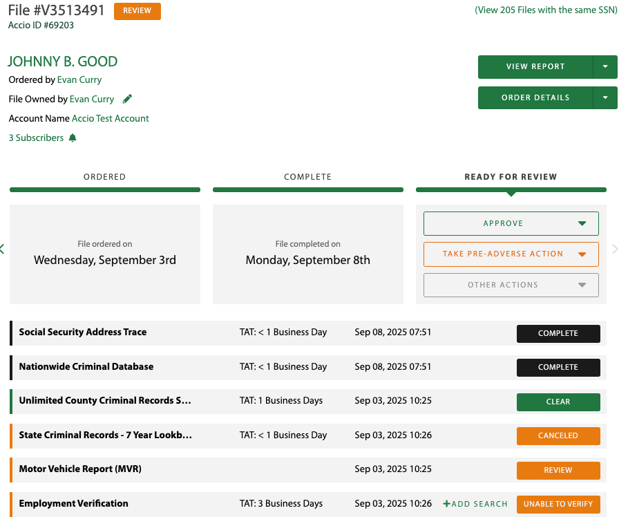 Search tags will allow users to easily see the status of each product ordered on a file. See two examples below of the various search tags.